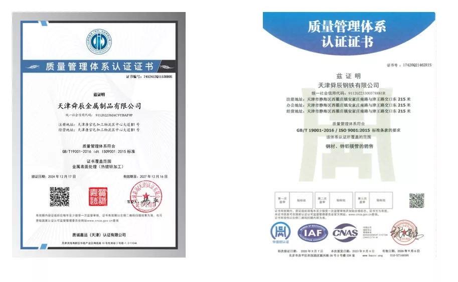 Why choose us?Tianjin Shuncheng Industry boasts years of accumulated production technology, maintaining a 12-year record of zero defaults and zero annual quality incidents, laying a solid foundation for product quality. The company strictly adheres to national production standards and holds ISO 9000, 3A system certifications, and EU CE certification. With a 12-step process and a 3-layer full inspection mechanism, it achieves zero quality and safety incidents annually and zero order defaults for 12 years, demonstrating its proven strength. Each finished product undergoes drying, inspection, and fine finishing before packaging and shipping, ensuring superior quality. The company employs over 300 production workers and can produce 236 specifications of ERW steel pipes, offering a complete range of specifications and supporting customization to precisely meet diverse needs.