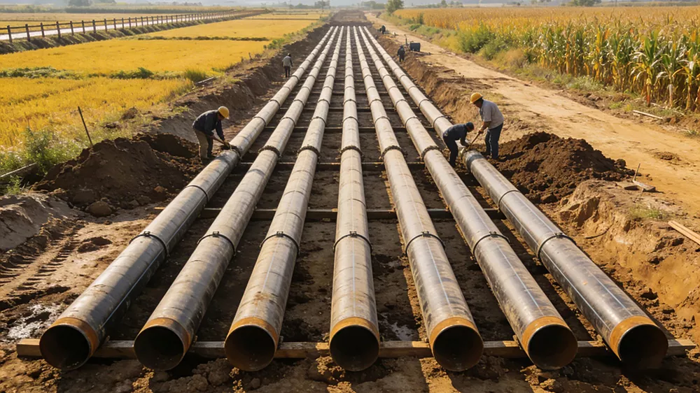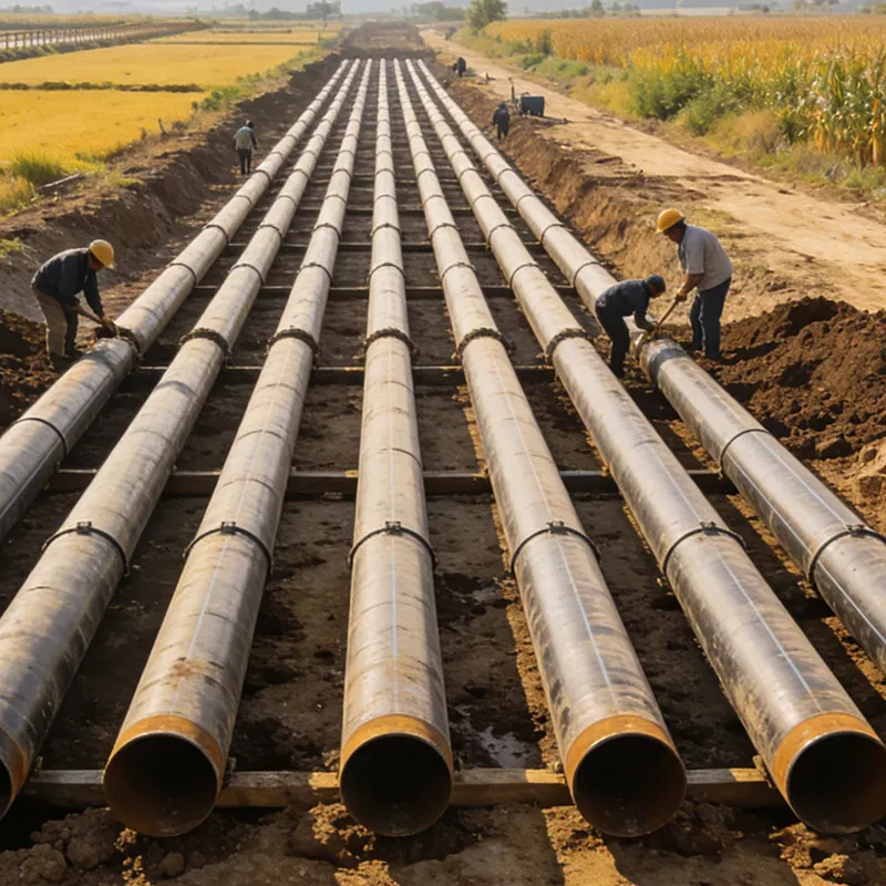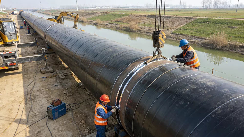 Applicable scenarios: Large-scale water diversion projects, water transfer projects, flood control and drainage projects, main pipelines for farmland irrigation, water supply projects for drinking water, island water supply projects, etc. The core requirements are high flow capacity, corrosion resistance, and water pressure resistance. They can be adapted to complex environments such as riverbeds, salt-affected lands, etc. They can effectively resist water erosion and geological subsidence, ensuring the stable transmission of water resources and guaranteeing the safe operation of water conservancy projects. They play an important supporting role in key national water conservancy projects.Scene description: At the construction site of the Jinghai Water Diversion Project, large-diameter spiral pipes are used for main pipeline laying. The pipes pass through rivers or farmlands, and workers perform interface sealing treatment. At the island water supply project site, large-diameter spiral pipes with 3PE anti-corrosion technology are used to resist seawater erosion and achieve the interconnection of water resources between the island and the mainland.
