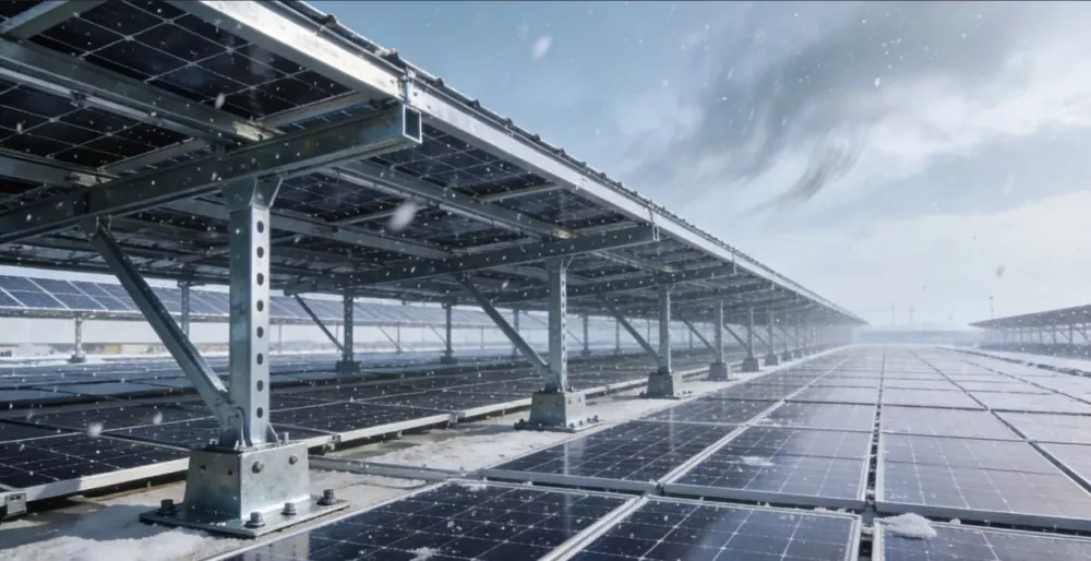 Wind resistance rating ≥ 12; snow load resistance ≥ 0.7 kN/m²; surface hot-dip galvanized treatment, zinc layer thickness ≥ 80 μm, salt spray resistance ≥ 1000 hours; load-bearing capacity ≥ 2.5 times the weight of the component.